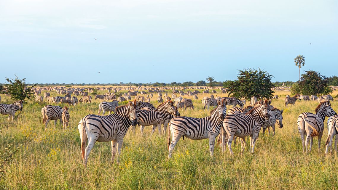 Es ist ein Geräusch, das man nie wieder vergisst, wenn es einmal wahrgenommen wurde. Ein Eselähnliches Gewieher – nur kräftiger und mit leichten Unterbrechungen. Noch wenige Minuten vorher lauschte man den Stimmen der Nacht: Uhus, Barking Geckos oder dem Geplätscher der Elefanten beim Baden, doch plötzlich sind sie da, Tausende von Zebras.