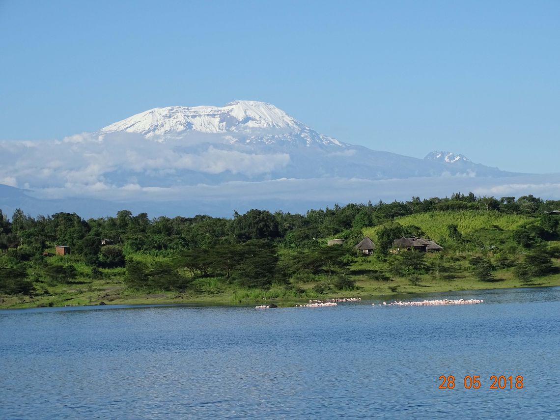 An diesem Morgen erwachten wir mit der aufgehenden Sonne und der Hoffnung, endlich die schneebedeckte Krone des Kilimanjaros zu sehen. Sylvester behielt recht, der mächtige Fünftausender zeigte sich in seiner gesamten Fülle vor uns. Es erschien so unwirklich… ein so riesiger, mit schneebedeckter Berg in der ansonsten so platt erscheinenden, ostafrikanischen Landschaft. Sylvester zeigte uns auch eine besondere Stelle im Camp, von wo aus wir den Mount Meru und den Kilimanjaro - die beiden höchsten Berge Tansanias – gleichzeitig bewundern konnten. Wir beide waren begeistert. Auf dem Weg vom Kambi ya Tembo zum Arusha Nationalpark rief ich immer wieder Steven zu „Halt - von hier aus muss ich ein Foto vom Kili machen!“.