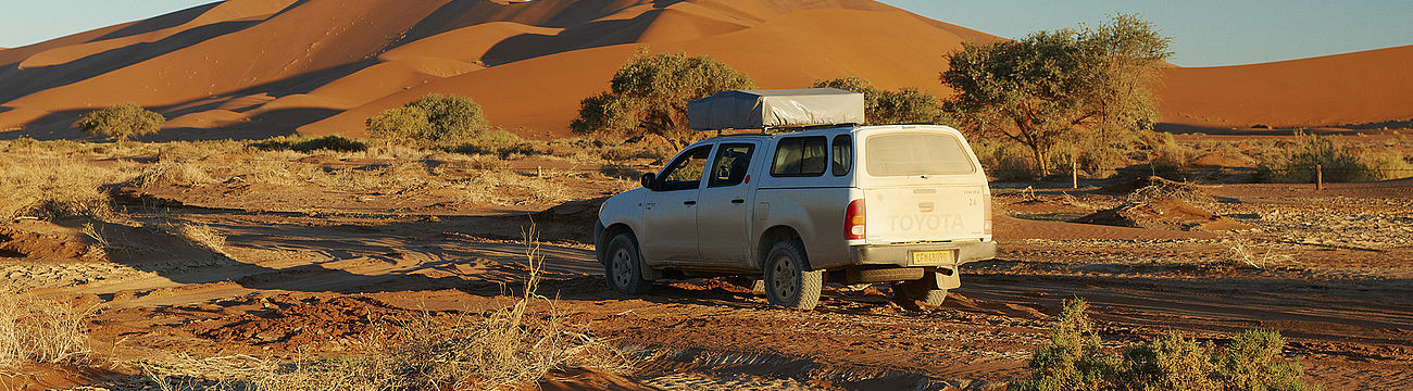 Ob Regenzeit, Tiefsand, geröllige Pisten oder einfach nur Teerstaßen, wir haben das richtige Fahrzeug für Ihren Urlaub. Gerne beraten wir Sie bei der Auswahl des Fahrzeuges, denn nicht jedes Fahrzeug ist für jede Region und Jahreszeit geeignet. Bei Buchung erhalten Sie ausführliche Unterlagen zur Übernahme verschiedener Fahrzeuge und Tipps zum Allradfahren. Die meisten Strecken im südlichen Afrika sind wir bereits selbst gefahren. Profitieren Sie von unserer Erfahrung!
